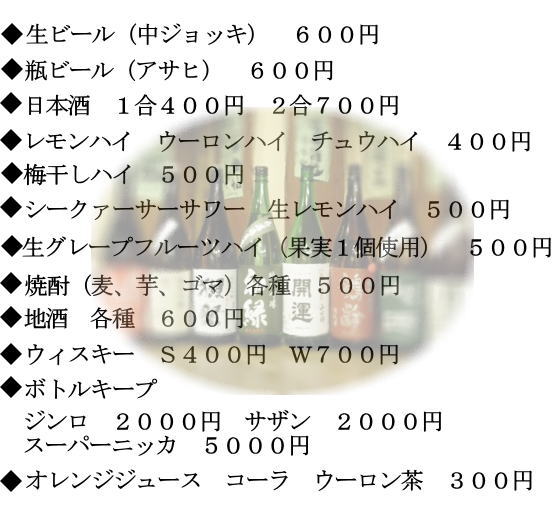 ジンロ、サザン 2,000円→2,500円へ変更させていただきます。